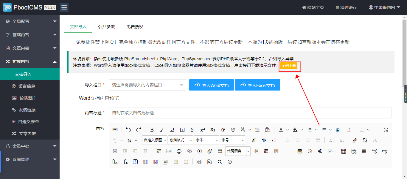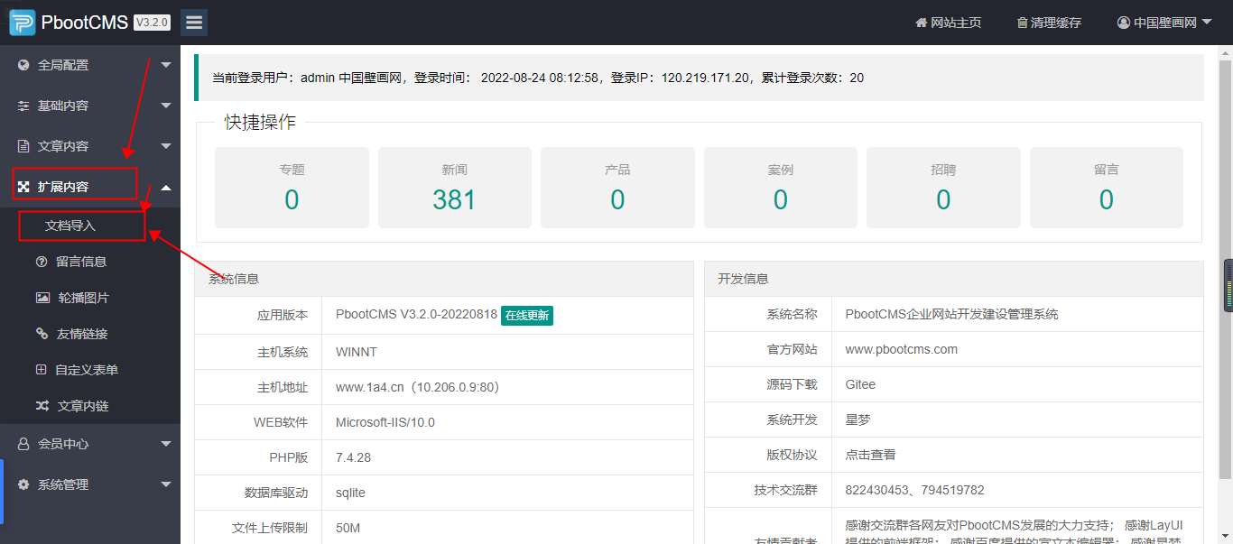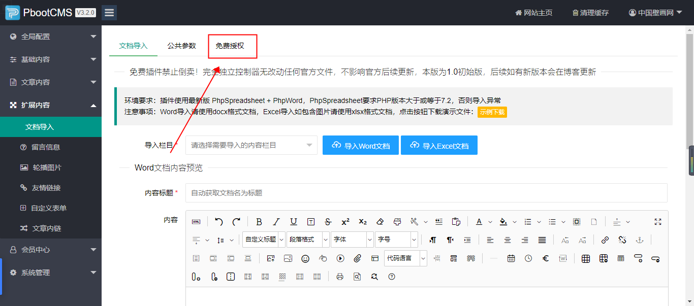 在扩展内容菜单里多了一个文档导入菜单;