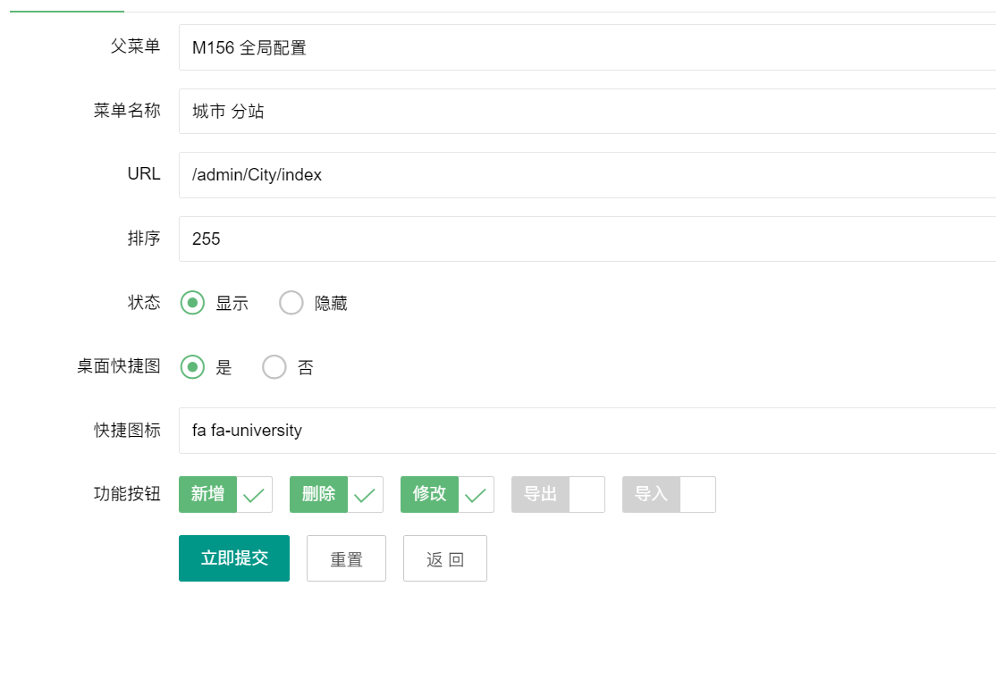 添加完成后请退出登录,重新登录后即可在扩展内容中看到城市分站菜单。
