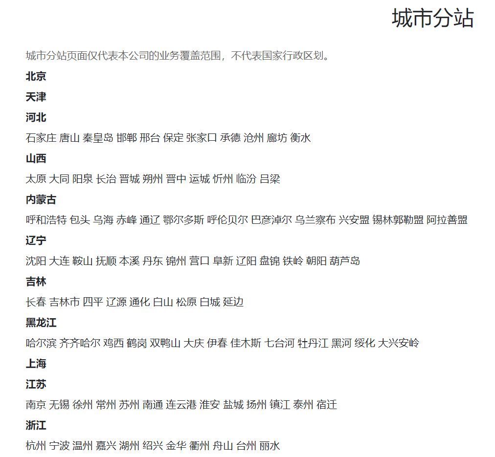 分站同页切换链接(例:当前链接:http://www.xxx.com/beijing/company/,北京分站的链接则自动显示为:http://www.xxx.com/shanghai/company/)。 |