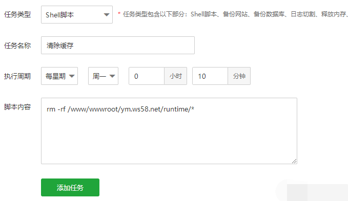 此命令可定时清理缓存,是为解决某些网站程序runtime文件夹下缓存过多过大问题。
