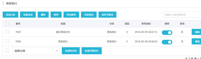 2、在“内容管理”-“联系方式”里添加信息 第一条是通用信息,第二条是某个城市的联系方式