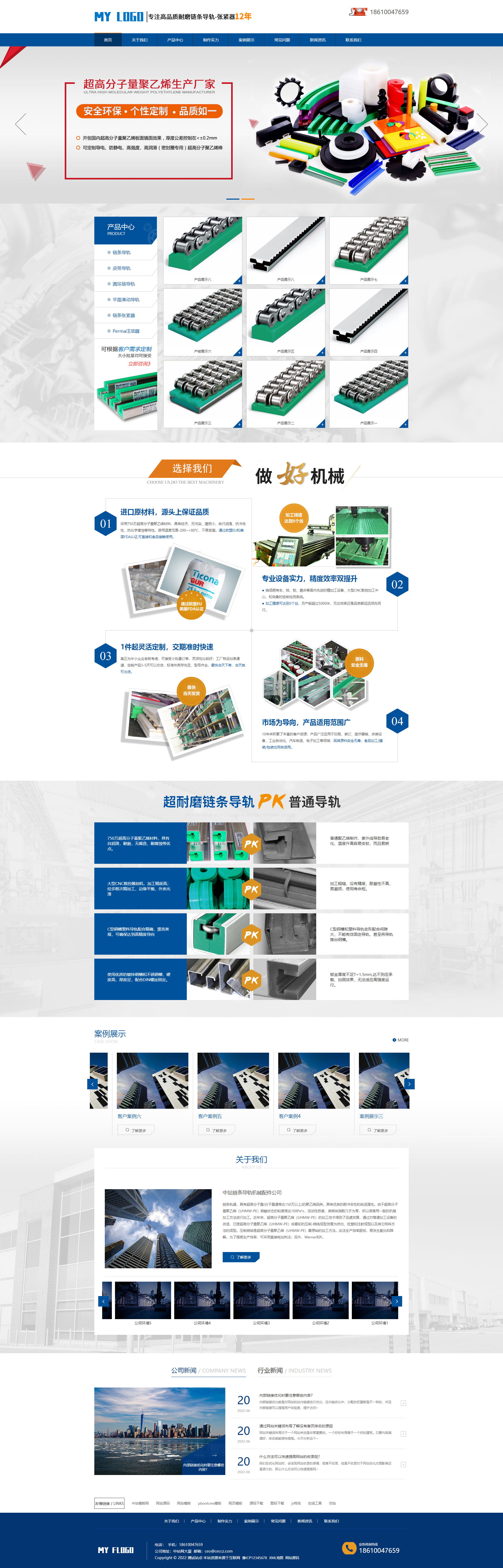 【M034】(PC+WAP)大气链条导轨张紧器生产公司网站pbootcms模板 营销型链条导轨网站源码