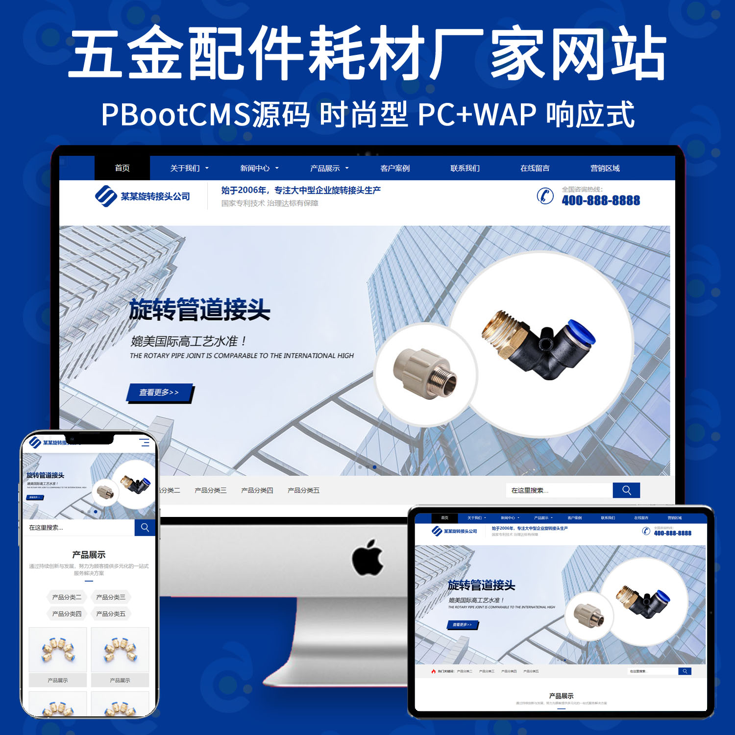 PbootCMS内核开发的网站模板,该模板适用于五金配件网、机械设备网站等企业,当然其他行业也可以做,只需要把文字图片换成其他行业的即可;
