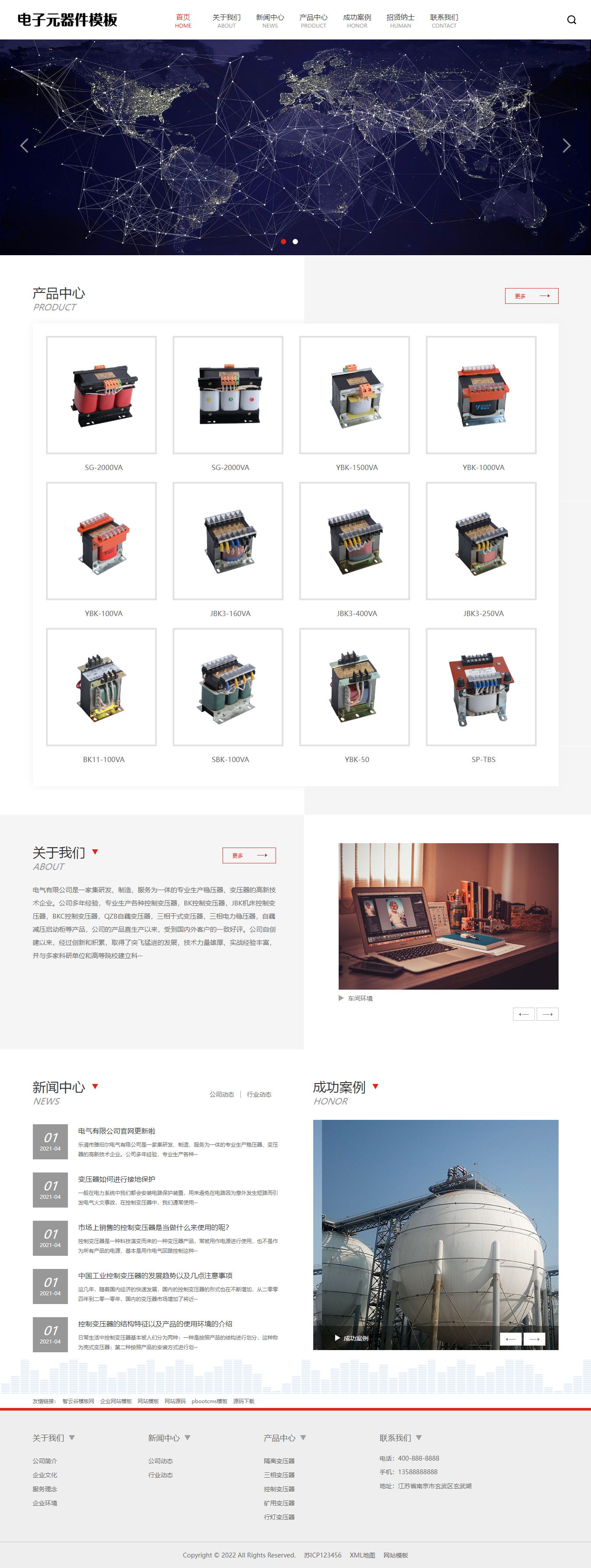 pbootcms网站模板(自适应手机端)变压器电子元器件pbootcms网站模板 电器配件网站源码下载-海报