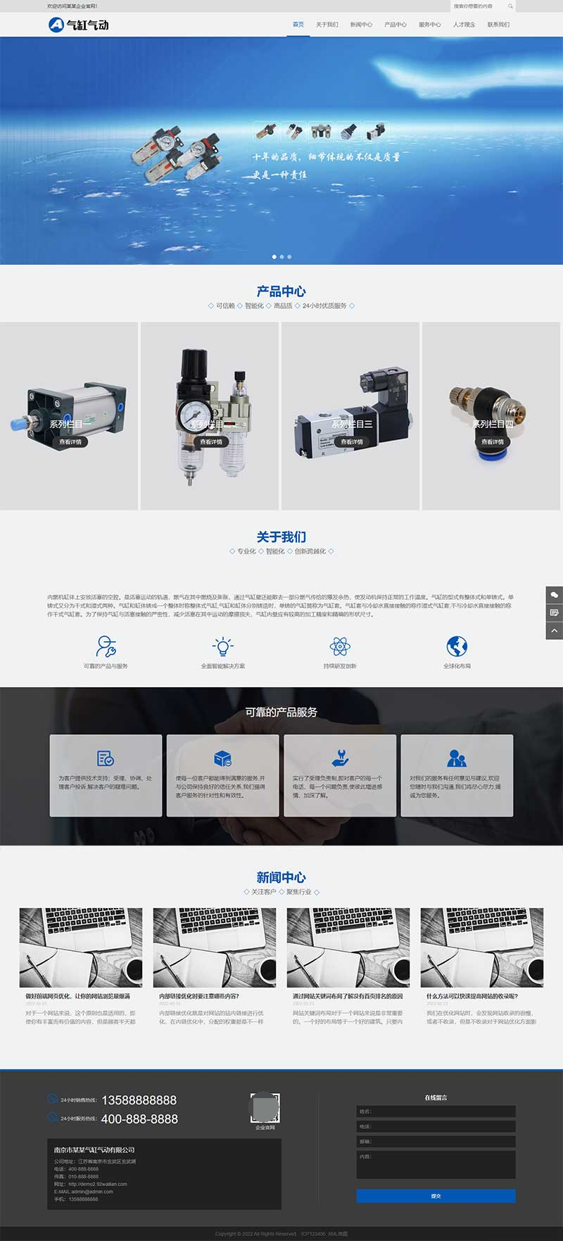 (自适应手机端)pbootcms气缸气动系统网站模板 五金元件类网站源码下载PbootCMS内核开发的网站模板,该模板适用于气缸气动网站、五金元件网站等企业,当然其他行业也可以做,只需要把文字图片换成其他行业的即可;