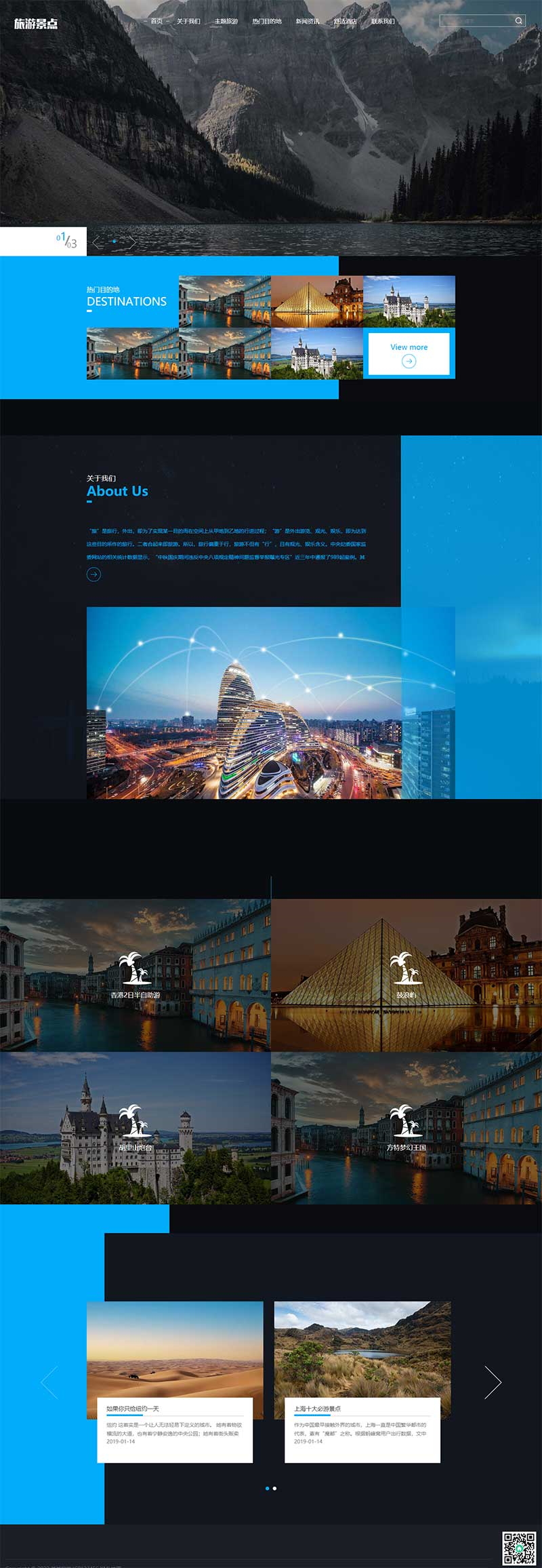 AB171-pbootcms响应式旅游公司网站模板 蓝色宽屏旅行社网站源码