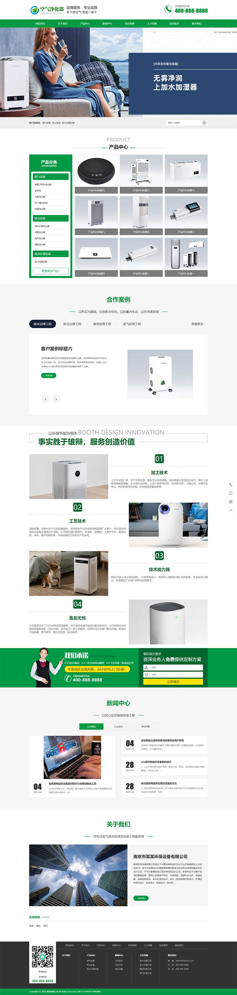 PbootCMS内核开发的网站模板,该模板适用于环保企业网站、空气净化器网站等企业,当然其他行业也可以做,只需要把文字图片换成其他行业的即可;