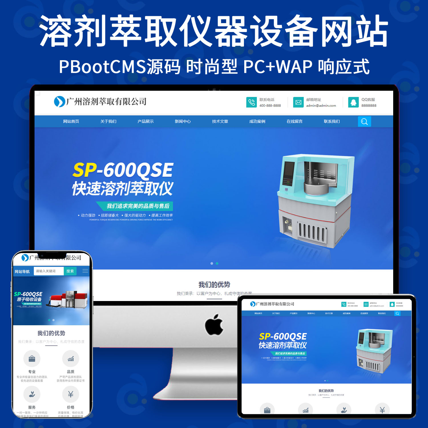 pbootcms网站模板(PC+WAP)机械五金设备网站 蓝色工业机械设备网站源码下载