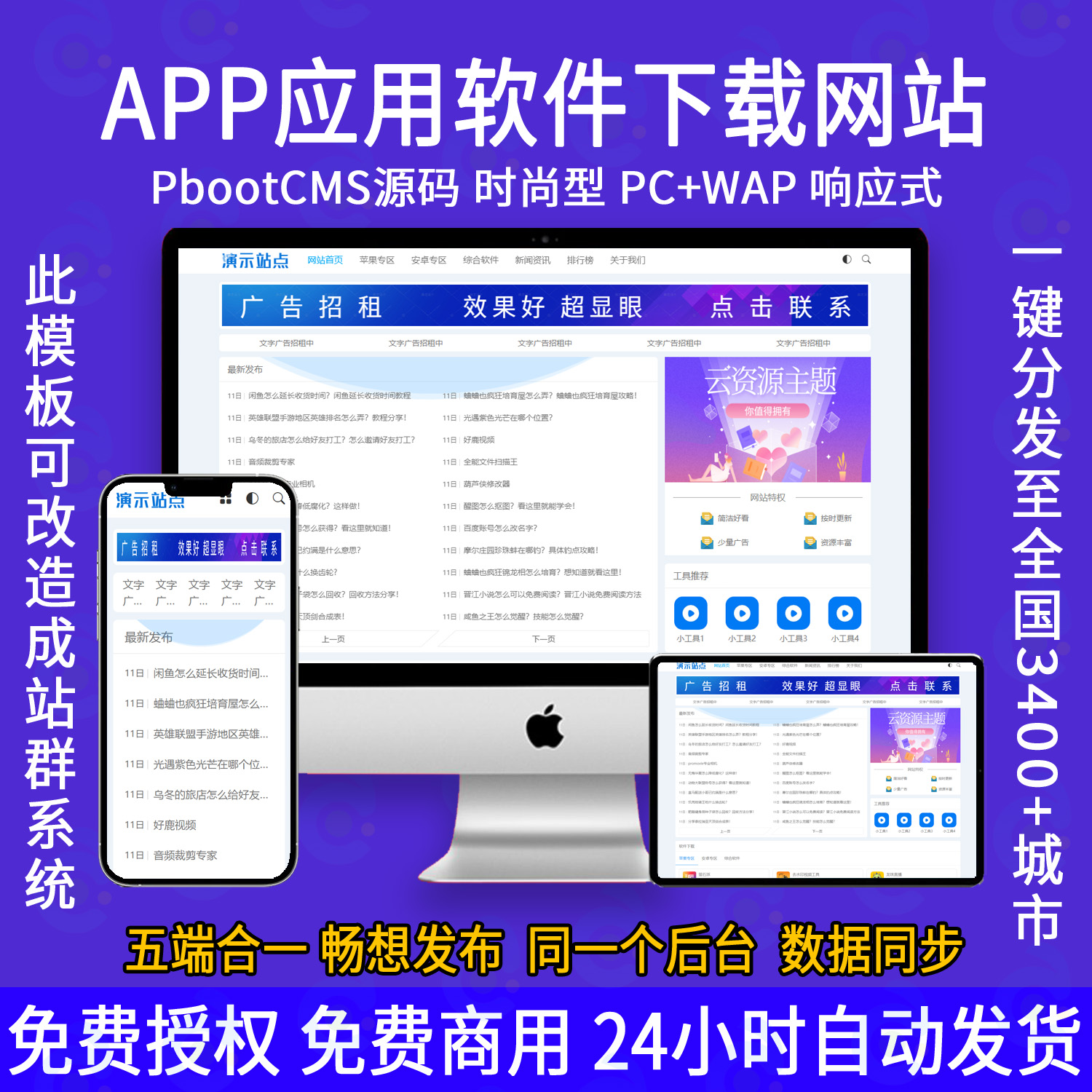 【M033】-(PC+WAP)电脑操作系统软件下载类网站pbootcms模板 windows系统软件下载网站源码