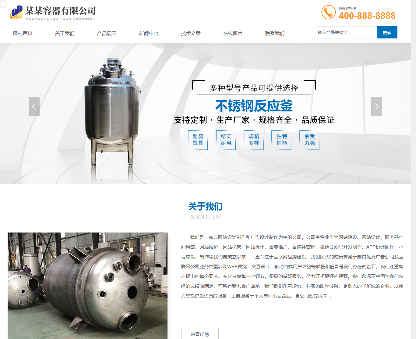 PbootCMS内核开发的网站模板,该模板适用于容器网站、容器设备类等企业;