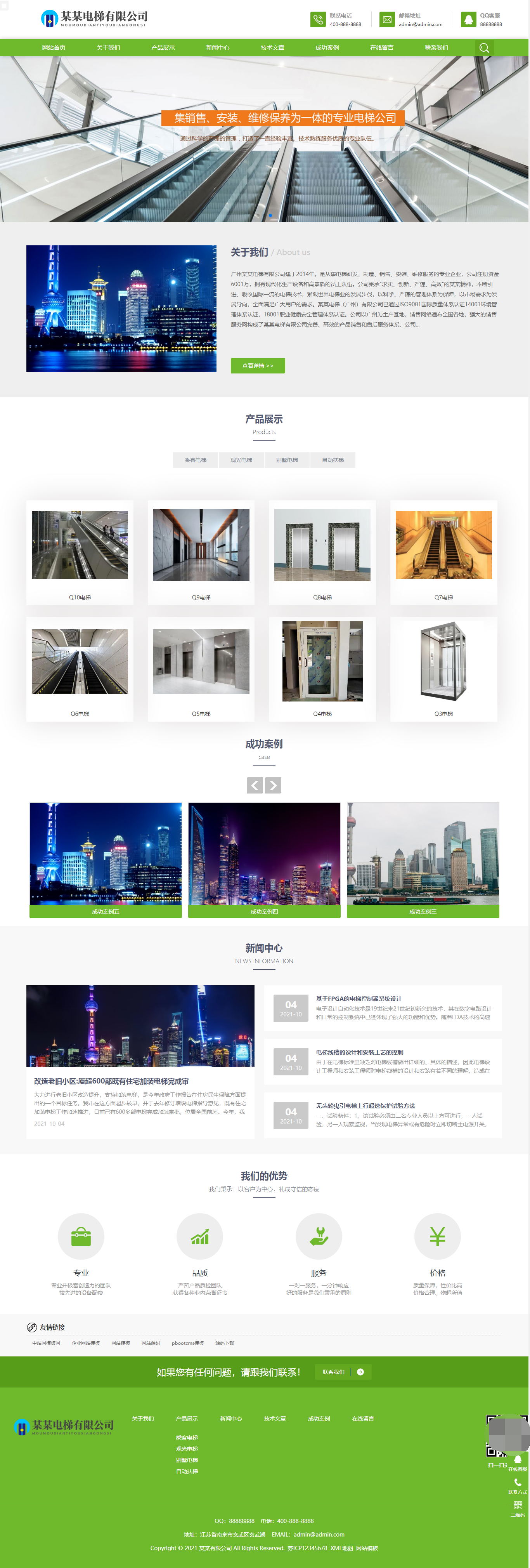 (自适应手机版)响应式电梯扶梯类pbootcms模板 电梯生产企业绿色企业网站源码下载PbootCMS内核开发的网站模板,该模板适用于电梯、扶梯类等企业,当然其他行业也可以做,只需要把文字图片换成其他行业的即可;