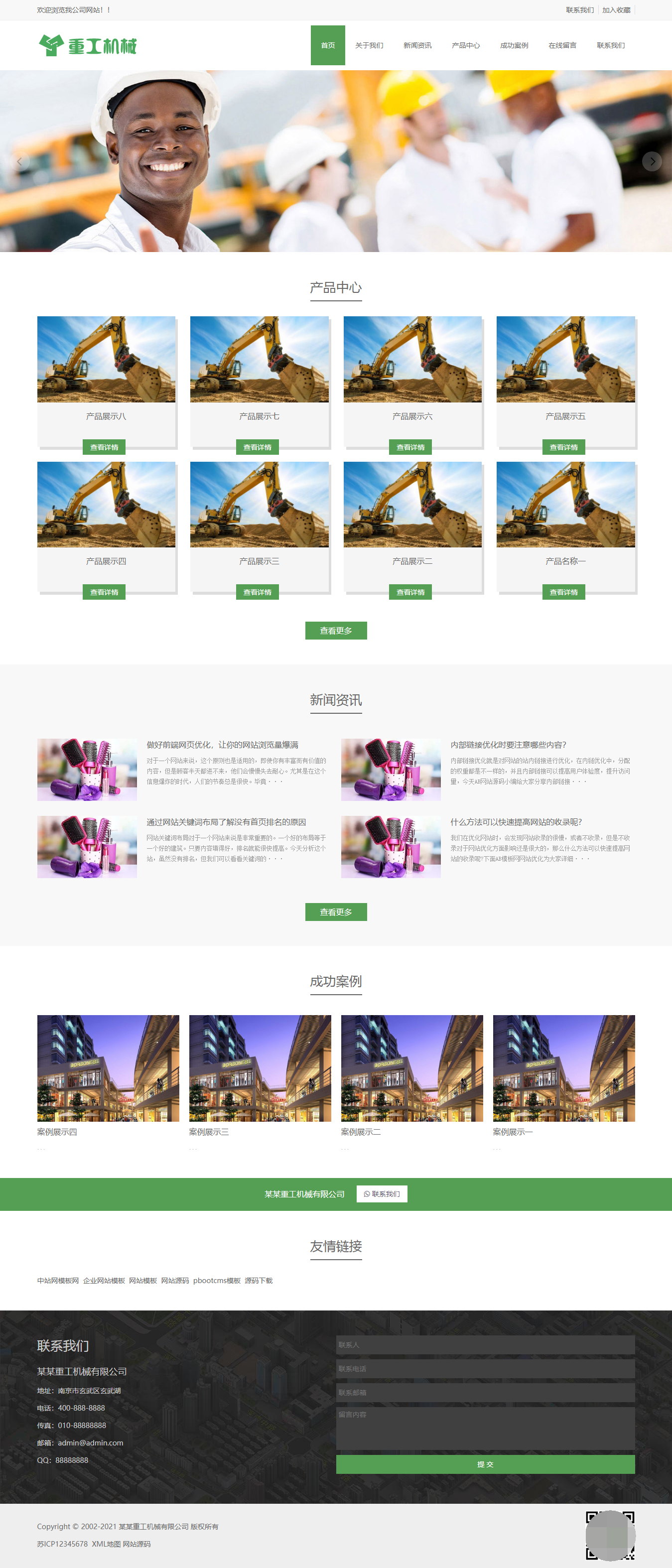 (自适应手机端)重工工业机械网站pbootcms模板 挖掘机机推土机网站源码下载PbootCMS内核开发的网站模板,该模板适用于重工机械、挖机推土机、工业机械等企业,当然其他行业也可以做,只需要把文字图片换成其他行业的即可;