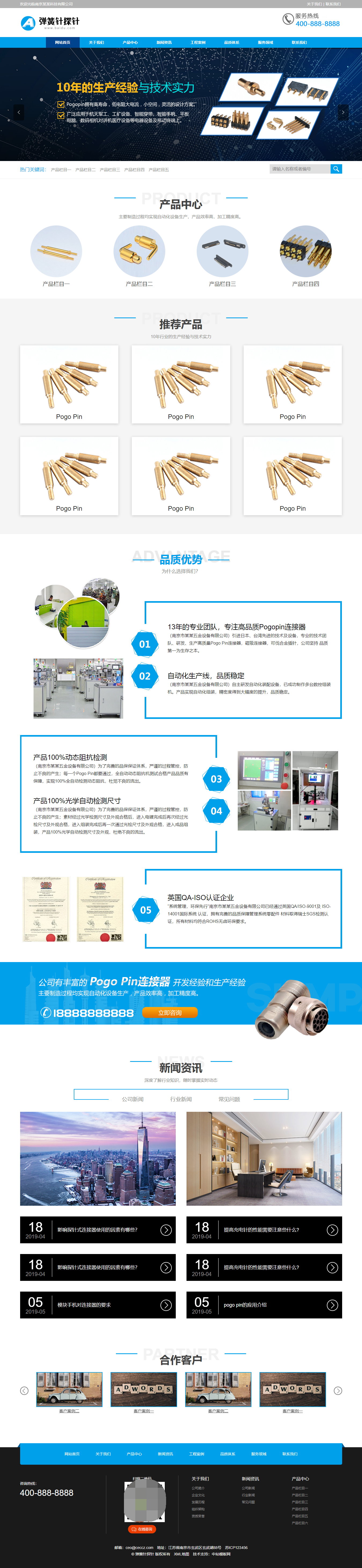 pbootcms网站模板(PC+WAP)蓝色弹簧针厂家网站pbootcms营销型模板 五金机械探针充电连接器网站源码下载-海报