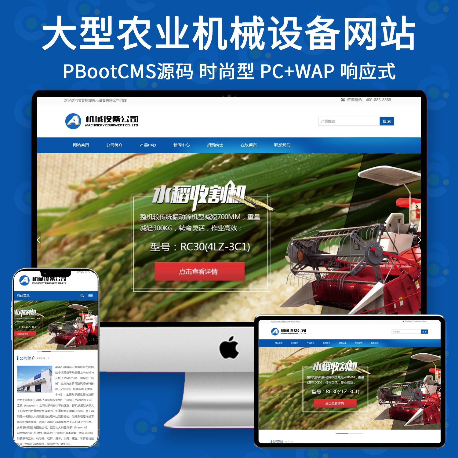 pbootcms网站模板 (自适应移动端)农业机械设备类网站pbootcms模板 大气宽屏农耕设备网站源码下载