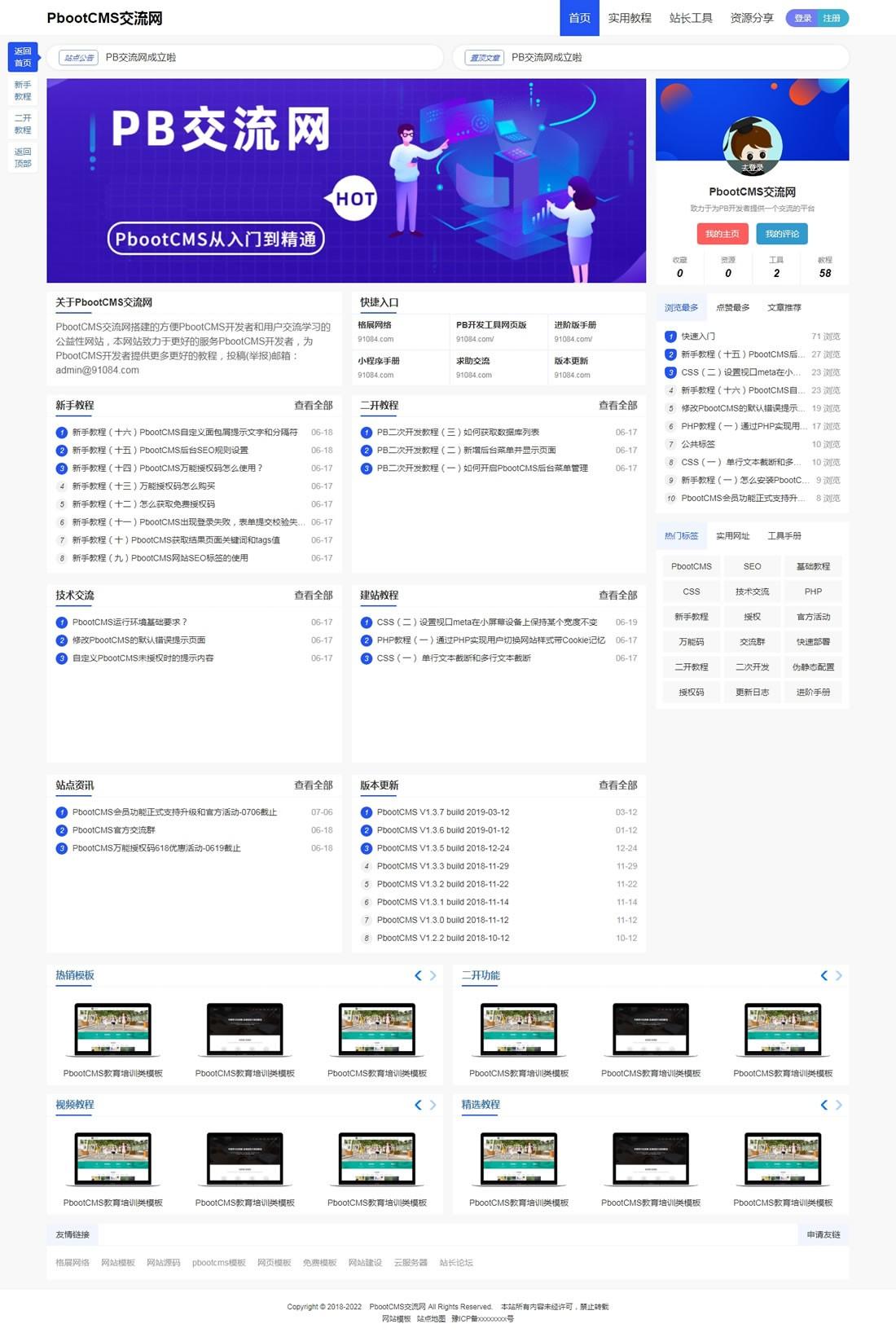 PbootCMS内核开发的模板,该模板属于教程资讯、建站教程、新闻博客类企业使用!