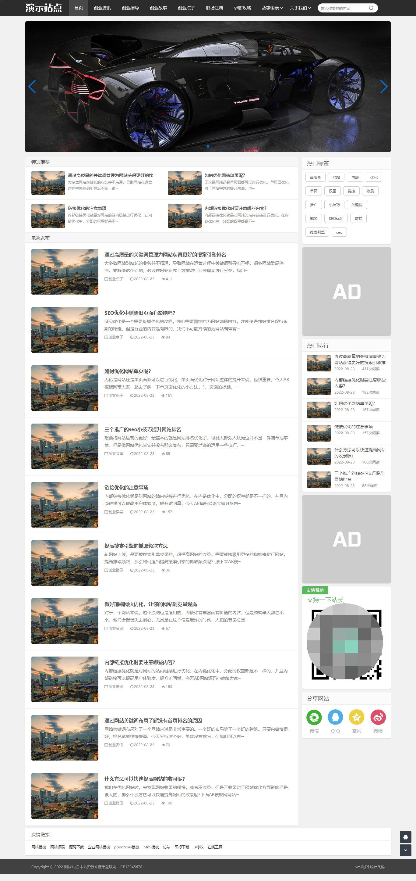 【PB340】(自适应手机端)创业资讯文章类网站pbootcms模板 新闻个人博客网站源码