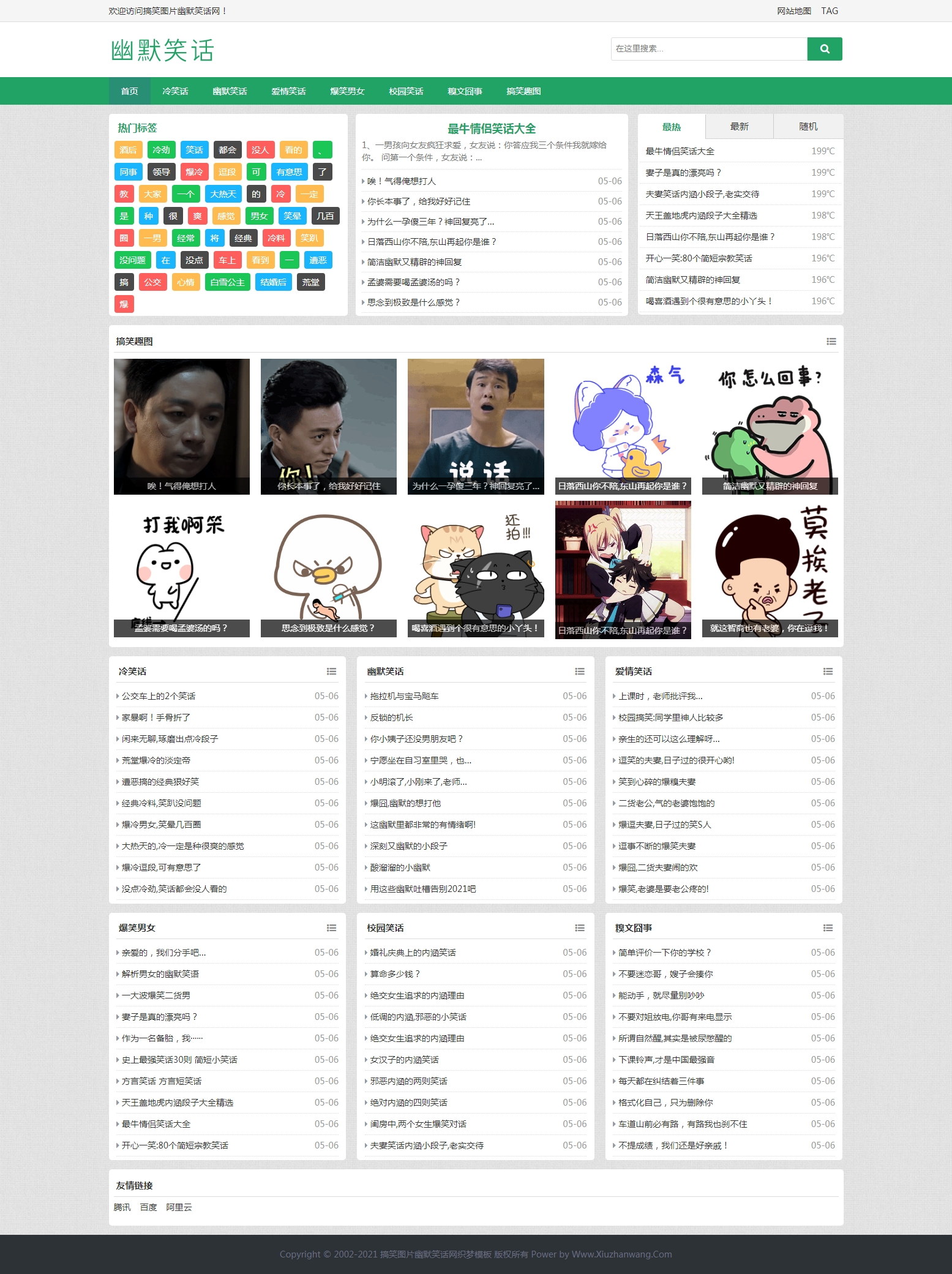 pbootcms网站模板幽默笑话网站pbootcms自适应模板 html5搞笑段子网站模板源码下载下载PbootCMS内核开发的网站模板,幽默笑话网站pbootcms自适应模板,笑话大全网主要供热门经典笑话,包括冷笑话,谐音笑话,爆笑笑话,幽默笑话,成人笑话等精选笑话,当然其他行业也可以做,只需要把文字图片换成其他行业的即可;