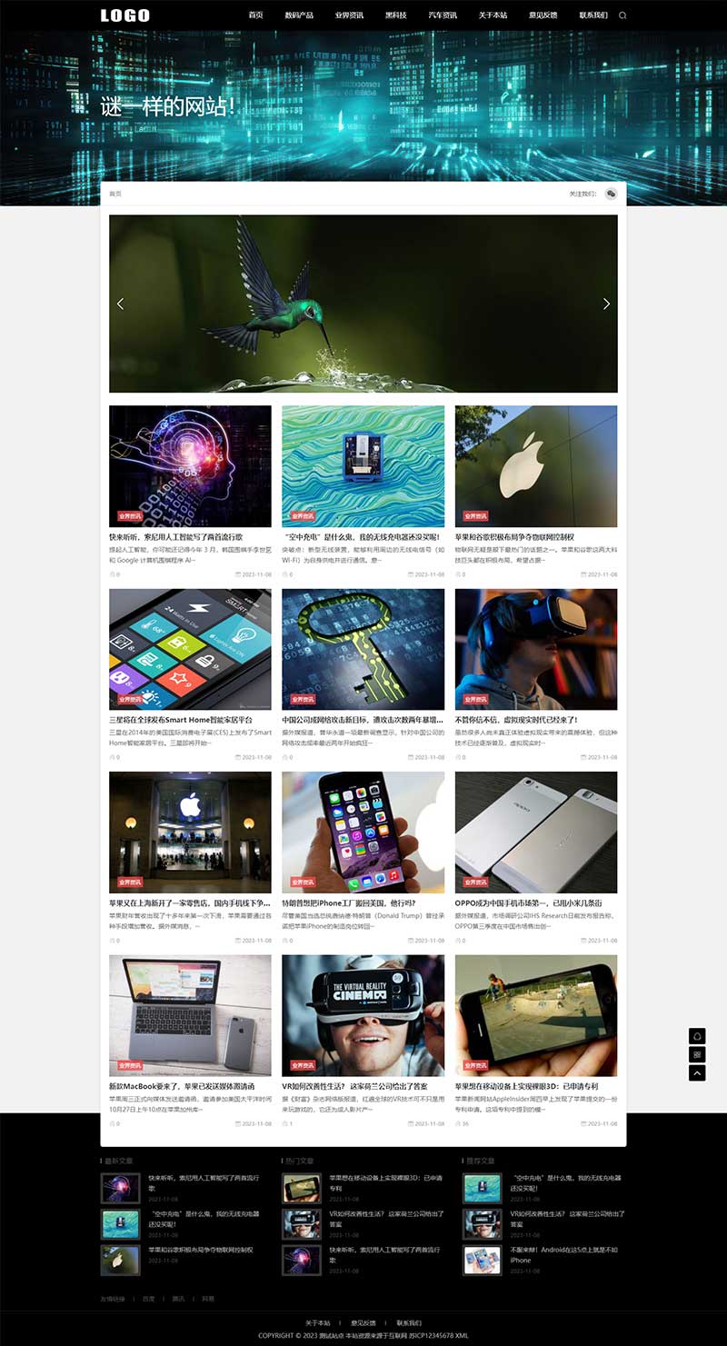 AB485-(自适应手机端)黑色博客网站模板 IT科技新闻资讯网站源码下载