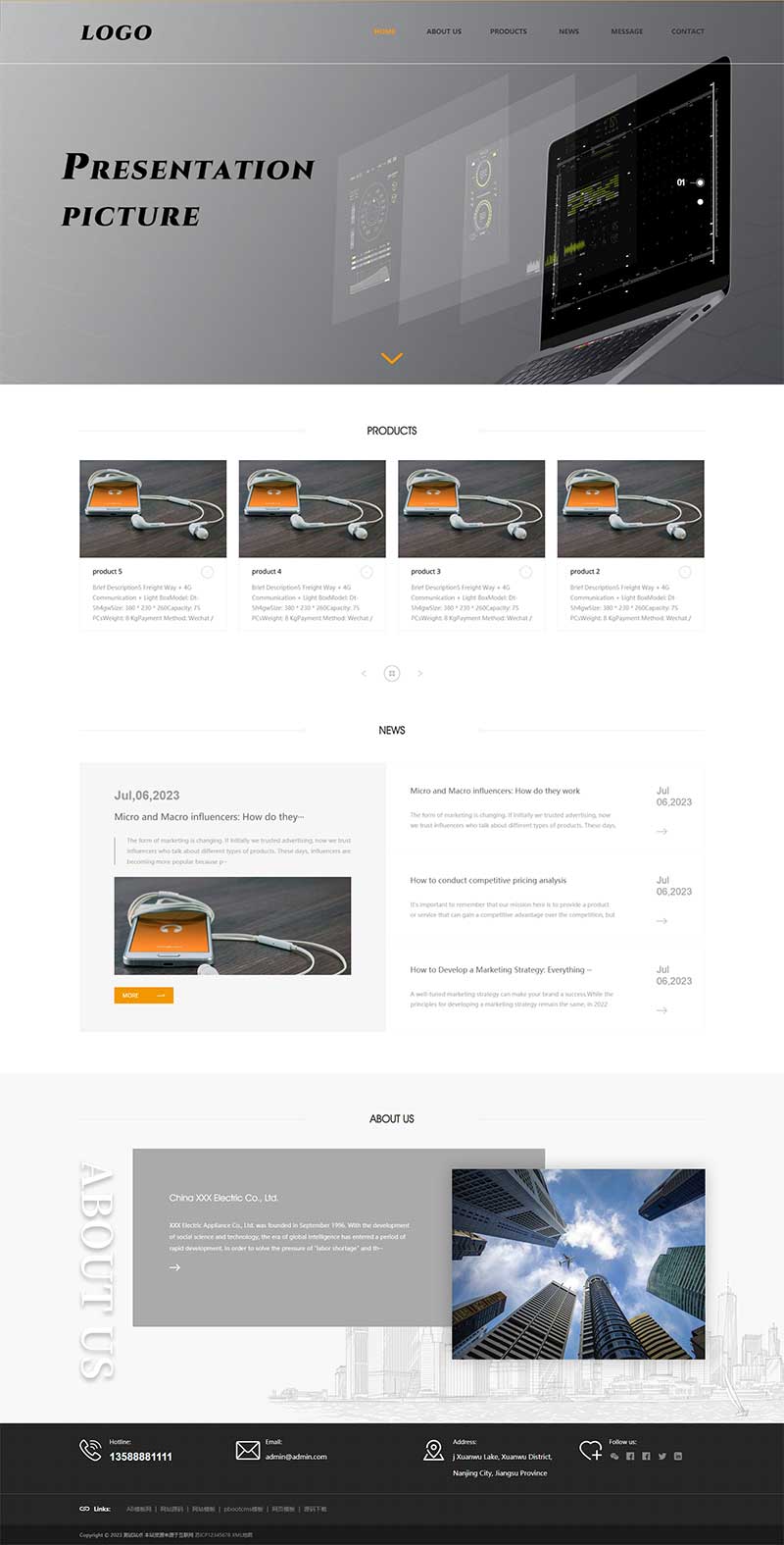 5:后台直接修改联系方式、传真、邮箱、地址等,修改更加方便。