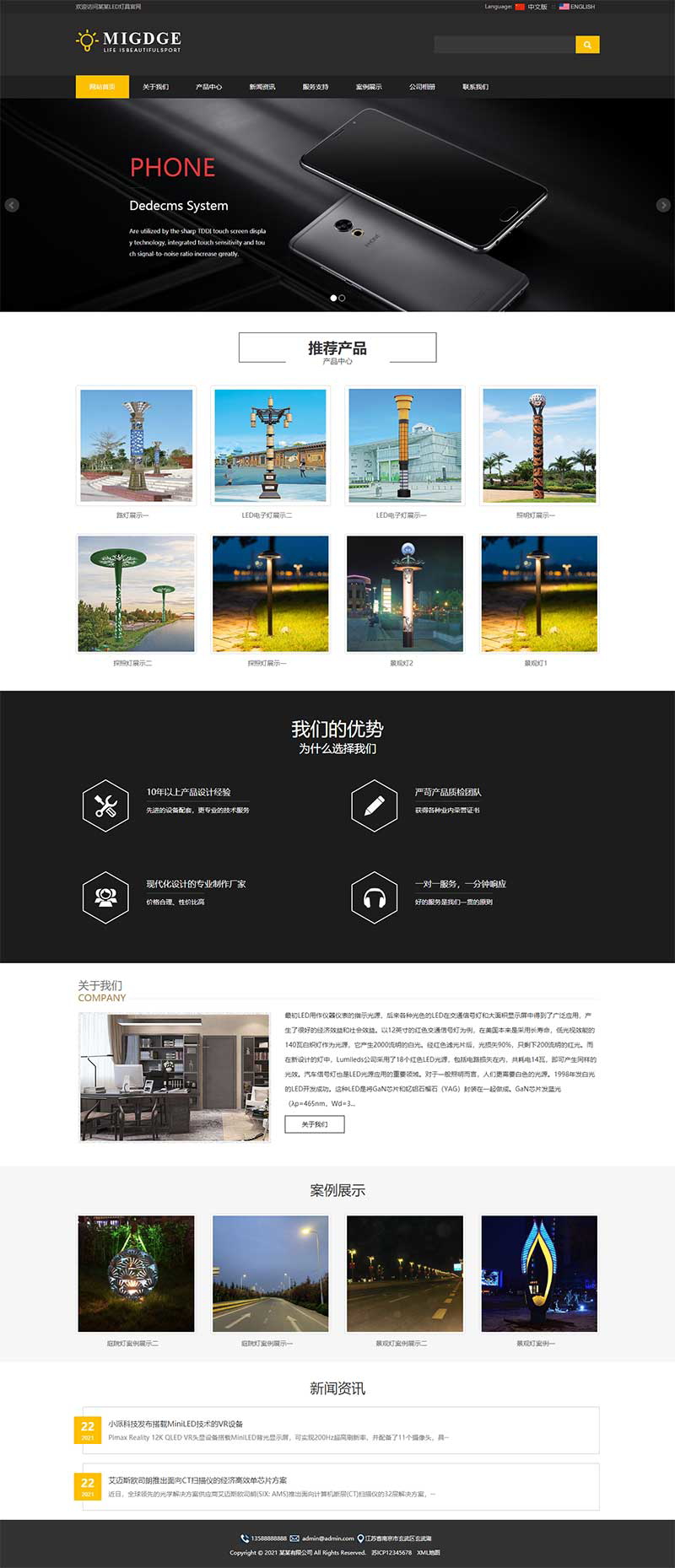 (自适应手机端)响应式中英文双语灯具外贸网站pbootcms模板 LED照明灯具网站源码下载PbootCMS内核开发的网站模板,该模板适用于中英文双语网站、LED照明灯具网站等企业,当然其他行业也可以做,只需要把文字图片换成其他行业的即可;