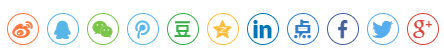 一键分享到微博、QQ空间、QQ好友、微信、腾讯微博、豆瓣、Facebook、Twitter、Linkedin、Google+、点点等社交网站,使用字体图标。