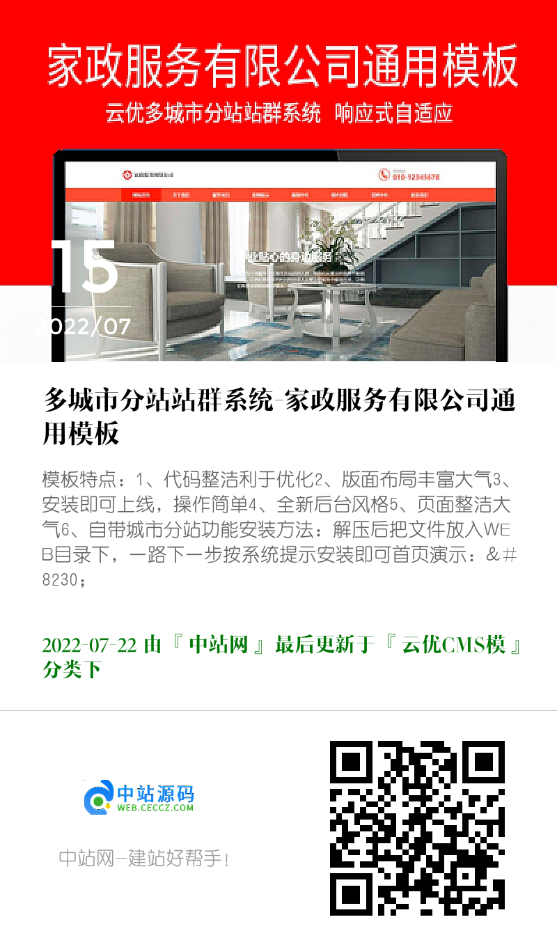 中站源码网-网络情报局 云优CMS模板 多城市分站站群系统-家政服务有限公司通用模板 https://web.ceccz.com/shangyong/yucms/1585.html